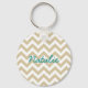 Angesagter und moderner Trendy Zickzack Schlüsselanhänger. Dieser coole Schlüsselanhänger weist ein Zickzack Zickzackmuster in Beige und Weiß auf. Fügen Sie diesem Design einen Text hinzu, um ihm eine persönliche Touch zu geben.