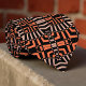 Nahtloses geometrisches Muster mit geometrischen Formen in Schwarz- und Orangetönen. Textur mit optischer Illusion Wirkung.