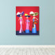 La Catrina, weltweit bekannt als Mexikos großer Todestag, ist eine der berühmtesten Repräsentationen der mexikanischen Folklore. Dieses Bild ist seit der Zeit der Prekolumbianer immer noch symbolisch geworden und wurde Anfang des 20. Jahrhunderts von Jose Guadalupe Posadas mit La Calavera Catrina oder Calavera Garbancera versteinert. Diese farbenfrohe, verpackte Leinwand zeigt drei elegante Catrinas, die bereit sind, Mexikos pulsierende, makabre Fiesta zu feiern: Tag der Toten.