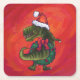 TRex Dino in Weihnachtsmannmütze auf Rot Rechteckiger Pappuntersetzer