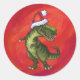 TRex Dino in Weihnachtsmannmütze auf Rot Runder Aufkleber