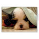 Tri Cavalier King Charles Spaniel Welpe unter einer Babydecke