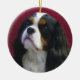 Dieses ist Doppel-mit Seiten versehen, Runde, die Keramik Weihnachtsverzierung, die eine ursprüngliche Fotografie eines Tri farbeunbekümmerten Königcharles Spaniel, mit einem soulful, liebevollen Ausdruck kennzeichnet.