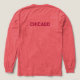 T-shirt graphique avec la ligne d'horizon de Chicago Illinois. Couleurs prunes. La ligne d'horizon de Chicago est sur le devant de cette chemise tricolore. Le dos a "CHICAGO". Modifiez le texte au verso ou laissez-le tel quel. Utilisez le modèle pour créer votre propre t-shirt graphique.