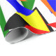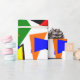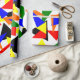 Dieses Verpackungspapier hat ein Bauhaus-Design einer Collage von dreiecken in rot, gelb, orange, blau und grün.