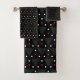 Motif abstrait moderne de triangles noirs jumelé à des points rouges et blancs contre un arrière - plan gris foncé. Ce design contemporain est un clin d'oeil subtil au triangle des ovnis, invitant la curiosité de ceux qui connaissent l'ufologie. Que vous soyez amateur d'OVNI ou amateur de design moderne, cet ensemble de serviettes de bain ajoute une touche unique à votre décor de salle de bain. L'esthétique minimaliste complète les différents styles tout en célébrant tranquillement l'inexpliqué. Modifiez pour changer l'arrière - plan en couleur de votre choix. ♡ Idyllfire