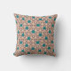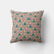 Dieses Kissen hat ein geometrisches Design aus wiederholt braun-bräunlichen Dreiecken mit türkisfarbenen Kreisen auf einem Feld von weißlich. Das gleiche Design in verschiedenen Farben gewollt? Nachricht.