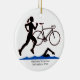 Mit diesem Design einer weiblichen Silhouette mit einer roten Kontur eines Läufers, Fahrrads und Schwimmers eine Art "Eins" schaffen. Fügen Sie bei Bedarf mehr Text hinzu. Originelles Design von Night Owl's Menagerie, 2017.