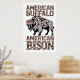 Eine stilisierte Schwarz-Weiß-Illustration einer amerikanischen Bison, die mit geometrischen Mustern geschmückt ist.
