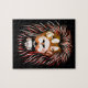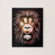 Tribal Löwe Gesicht mit einem Fußabdruck auf seinem Gesicht, Krieg Malerei Stil. Puzzle für Wildtiere und Löwenliebhaber.