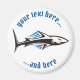 Schwarzes Stammessymbol eines Hais mit blauen Streifen. Zwei benutzerdefinierte Textfelder im Kreis.