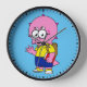 Triceratops Nerd mit Rucksack und Textbuch. Uhr