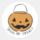 Trick oder behandeln Illustriert Orange Retro Pump Runder Aufkleber