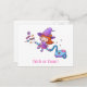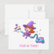 Eine niedliche Halloween-Postkarte mit einer Illustration eines kleinen Hexenmädchens, das ihren Staubsauger magisch gemacht hat und darauf reitet, um herumzulaufen und Leckereien zu sammeln! Whimsical nehmen Sie die traditionelle Hexe auf fliegenden Besen.