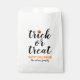 Diese beängstigenden niedlichen Halloween-Gefälligkeitstaschen sind mit "Trick or Treat" in modernem, schwarzem Drehbuch mit einem orangefarbenen Jack o'lantern Kürbisakzent ausgestattet.