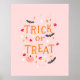 Mit diesem rosa Poster mit dem Motto "trick or treat"-Poster machen Sie Ihre halbwegs niedlich. Mit Glitzern dekoriert, um das zauberhafte Ambiente der Saison zu schaffen. Erhalten Sie das als Sofortdownload für einige spoky Party Dekoration in letzter Minute. Karo aus unseren ähnlichen Produkten und dekorieren deine Wände mit einem Set!