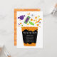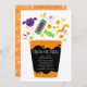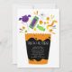 Diese leckere Einladung enthält eine Party-Tasse mit Halloween-Süßigkeiten. Die Worte "Trick oder Treat" werden in einem lustigen und festlichen Schriftart geschrieben. Es ist der perfekte Weg, die Kinder Ihrer Freunde zu einem Trick-oder-Behandlung-Abenteuer einzuladen!