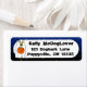 Ein hübscher Cartoon-Hund ist als Geist in diesen lustigen Halloween-Adressetiketten gekleidet! Die Fibel hat einen Jack-o-lantern Trick oder Leckerbissen in seinem Mund, alle bereit, einige Goodies zu sammeln. Einzigartige Halloween-Adressetiketten für Hundefreunde.