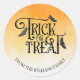 Fügen Sie Ihren Halloween-Favoriten mit diesem bearbeitbaren Rundaufkleber "Trick or Treat" eine eigene Touch hinzu. Mit eleganter Typografie, fliegenden Fledermäusen und einem warmen, orangefarbenen Aquarell eignet er sich hervorragend zum Versiegeln von Leckereien-, Gastgeschenk- oder festlichen Umschlägen. Personalisieren Sie mit Ihrem Familiennamen, Veranstaltungstitel oder einer besonderen Nachricht für ein einmaliges Halloween-Detail Gäste Liebe.