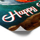 Ein freundlicher Geist schwimmt durch die Luft und trägt einen Süßwarenkorb mit seinem Jack-o'-Laterne-Kürbistrick oder -Körbchen. Der Hintergrund ist ein dunkler, galaxischer Nachthimmel mit ein paar Sternen und einem Vollmond. Design sagt "Happy Halloween" und ist mit jedem Namen personalisiert.