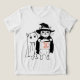 T - Shirt einer kleinen Hexenkatze, die eine Leckerei mit dem Text "TRICK OR TREAT" trägt, während ein Geist aufschaut