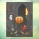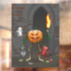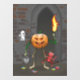 Halloween Window Kleben mit dem Kürbis aus und trick oder behandeln Süßigkeiten für seine Freunde, der kleine Geist und der rote Dämon.
