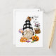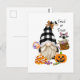 Niedliches Gnome umgeben von Bonbons und einer freundlichen Fledermaus. Im Text steht "Trick or Treat".