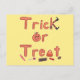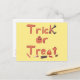Diese lustigen Halloween-Postkarten enthalten die Wörter Trick oder Treat. Zu den Wörtern zählen ein Besen, Hexenbeine, Bonbons und ein Kürbis. Die Wörter sind hellorange mit einer roten Orange umrissen. Der Buchstabe k besteht aus einem Besen und Hexenbeinen mit gestreiften Strümpfen. Unter den Wörtern wird eine Süßigkeitsschau abgebildet. Die Hintergrundfarbe ist gelb und kann an jede Farbe Ihrer Auswahl angepasst werden. Vielen Dank, dass Sie CherylsArt auf Zazzle einkaufen.