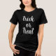 Moderner Trick oder Treat Moderne Drehbuch Womens Halloween T - Shirt. Diese T - Shirt-Designfunktion ist Text in weißen Schriftzeichen.