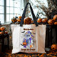 Feiern Sie Halloween im Stil mit dieser personalisierten Tasche mit einem niedlichen Patchwork-Geist, Kürbis, Fledermäuse und "Trick or Treat"-Text. Perfektes Halloween-Geschenk oder wiederverwendbare Trick- oder Leckerei-Tasche für Groß und Klein. Individuelle Name Option macht es einzigartig! Klicken Sie, um Ihre Tote-Tasche anzupassen.