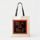 Diese Tasche würde die beste Tasche für Ihren Säugling oder Kleinkind, der schüchtern ist, sagt es alles. Auf einem schwarzen Hintergrund mit orangefarbener Kontur. "Trick or Treat" ist auf der Tasche in einer unheimlichen orangefarbenen und roten Schrift geschrieben. Diese Taschen sind in verschiedenen Stilen und Größen erhältlich.