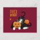 Diese Postkarte zeigt spielerisch geometrische schwarz-weiße Katzen mit den Worten 'Trick or Treat' in einem Halloween-Design. Eine Katze trägt sogar einen Kürbis als Halloween-Maske und verleiht dem fröhlichen und festlichen Look eine bezaubernde Touch.