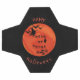 Ein Halloween-Design, das die Worte Trick oder Treat vor einem orangefarbenen Mondhintergrund sieht. Auf dem 'T' von Trick befindet sich ein schwarzer Silhouette einer Hexe, die einen schwarzen Hut mit Spinne trägt. Die Hexe ist von drei (3) Fledermäusen umgeben, die in schwarzer Silhouette fliegen. Die schwarze Silhouette eines Schlafschlägers hängt vom Buchstaben 'k' im Wort Trick. Unter dem Begriff "Leckerei" liegen zwei (2) Lollips und drei (3) Süßigkeiten (Lakaden oder Lollen) in schwarzer Silhouette. Perfekt für die Unheil in uns alle & um die Tradition von Halloween zu feiern. Der Text 'Happy Halloween' erlaubt die Anpassung Ihrer Wahl.