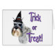 Sera-t-ce des Tricks ou des Traitements pour cet Halloween ? Notre design de vacances a votre race de chien préférée, le Schnauzer miniature, portant un casquette de sorcière. Ajoutez un peu de "Hocus Pocus" à All Hallows cette année !