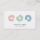 Niedliches und skurriles Donut-Design für Bäcker, Kuchendekoratoren oder Bäckereifachleute mit einem Trio aus Sprinkkuchenillustrationen in Pastelltönen aus Rosa, Aqua und Blau. Personalisieren Sie den Text mit zwei Zeilen Text auf der Vorderseite und fügen Sie Ihre vollständigen Kontaktdaten auf der Rückseite hinzu. Dieses Design ist auch in vertikalen und quadratischen Formaten erhältlich!