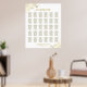 Ce magnifique tableau de sièges mariage présente un design simple mais élégant avec des fraises en faux feuille or ou des filiges florales dans les coins et un titre de calligraphie de script "s'il vous plaît trouvez votre table." Le tableau a des affectations de table pour 300 invités à 30 tables (10 places par table).