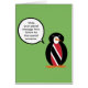 A card with Ms. Penguin dressed in the red, white and black Trinidadian and Tobagan flag. She got the vest on her trip to Trinidad and Tobago. If using for table numbers, you can place the number in Ms Penguin's talk bubble. Card is blank inside for use as menu or greeting card. Also, Can be used for anything your party might need in a folding portrait 5x7 size card. You can change the background color to match your personal taste or party theme. Remember January 20 is Penguin Awareness Day.