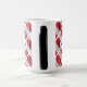 Auf einer Diagonale ist die Trinidadian- und Tobagonische Flagge in Rot, Schwarz und Weiß gepolstert, die mit den Worten TRINIDAD UND TOBAGO unten in den Farben der Fahne auf einer magischen Tasse angezeigt wird. Ein weißer Raum mit quadratischen Quadraten bietet einen Platz für Ihren Namen. Fügen Sie Ihren Namen für ein personalisiertes Aussehen, oder erstellen Sie ein individuelles Geschenk für jemanden besonderen. Der Name erscheint auf zwei Seiten der Tasse.