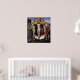 Reproduktion eines Kunstwerks mit dem Titel "Heilige Dreifaltigkeit von Botticelli. Szene, die Jesus Christus auf dem Kreuz darstellt, während Gott und der Heilige Geist darauf schauen. Gemalt um 1492