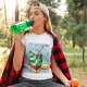 Ein Getränk in einer Schachtel mit Stroh. Dieses Design wirkt wirklich effektiv auf diesem Frauen-T - Shirt