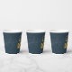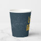 "Let's Drink" Papier Party-Tasse mit einem sternenstarken Nachthimmel-Design. Dunkler Himmelshintergrund mit gelbem Text. Ideal für Ihre Veranstaltung zum Thema Camping!