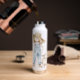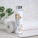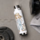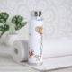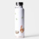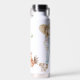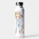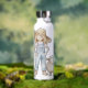 Trinkflasche Edelstahl mit Mädchen in Jeanslatzhose und Hut, einem kleinen Lamm, einem Welpen, einem Huhn und Hühnereier im Korb.