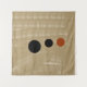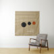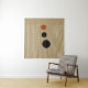 Drei Flecken auf einem cremefarbenen und beigen Untergrund mit unregelmäßigem gemustertem Hintergrund. Zwei der Flecken sind schwarz und einer ist rostig orange / braun. Geeignet für eine zeitgenössische oder minimalistische Wohngestaltung.
