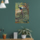 Two Female hen Amherst Pheasants and a Male Rooster Amherst Pheasant perch on rocks by a waterfall. You can see green ivy, leaves, and berries in the painting/monograph. This Adorable design is on this 11" x 8.5" Poster, The posters size can be changed to meet your needs.