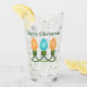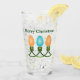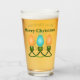 In der Weihnachtsgrafik, die dieses Trinkglas in orangen und blauen Farbtönen mit grünen Akkorden zwischen den beiden Glühbirnen ziert, sind drei farbenfrohe Glühbirnen hintereinander zu sehen. Text lässt sich leicht anpassen.