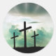 Triple Cross mit Blue Sky Hintergrund Runder Aufkleber