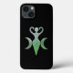 Eine wunderschöne Spiralgöttin zwischen zwei Halbmonden, die eine dreifache Göttin kreiert. Sie scheint aus mattiertem Glas in grünen Tönen und lila Stammesarmband gemacht zu sein. Die dreifache Göttin repräsentiert die drei Zyklen der Weiblichkeit: Der Maiden, die Mutter und der Krone.