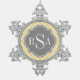 Triple Monogram Grau Yellow Gingham Pattern Schneeflocken Zinn-Ornament