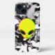 Trippy Alien Camouflage iPhone Case von BigTexFunkadelic, mit einem grauen und weißen Hintergrund mit einem gelben psychedelischen Alien Kopf in der Mitte.