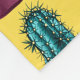 Trippy-Kaktus-Mustertuch mit einer digital zeichnend Tinte, die eine Kaktus-Pflanze in einem Topf voller seltsamer rosa Alien-Suppe darstellt. Dieses witzige, sukkulente Design hat ein psychedelisches Ambiente, das durch seine seltsamen, gelben, grünen, rosa und lila Farbtöne geprägt ist.